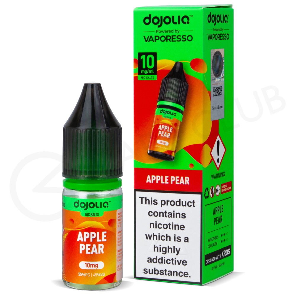 Apple Pear nic salt e-liquid by Dojoliq fuses the crisp flavour of apple and sweet pear notes for a juicy-tasting orchard fruit blend.