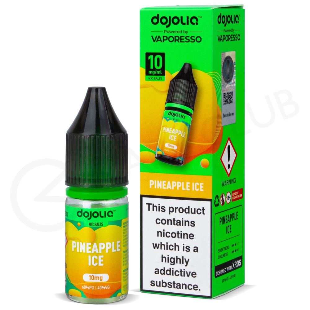 Pineapple Ice nic salt e-liquid by Dojoliq features a chilled, tropical vape. The exotic flavour of pineapple is cooled by frosty ice notes in every puff.