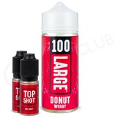 Donut Worry shortfill e-liquid by 100 Large is a pastry themed blend with sweet and creamy notes. On inhale, a warm donut flavour provides a rich base, with a sweet yet sharp strawberry jam and a smooth vanilla custard following close behind.