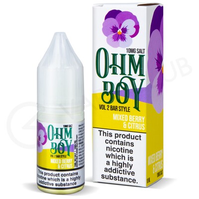 Mixed Berries & Citrus nic salt e-liquid by Ohm Boy Bar Style captures a juicy-tasting mixed fruit medley. Deep, sharp notes of mixed berry take centre stage on inhale, before meeting a zesty twist of lime on exhale.