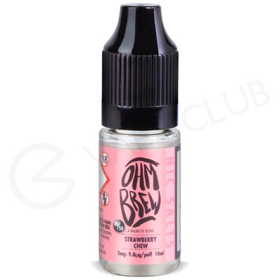 Strawberry Chew nic salt e-liquid by Ohm Brew is a candy blend with a fruity note throughout. The sweet taste of traditional strawberry is complemented by a layer of taffy candy with an almost creamy flavour.