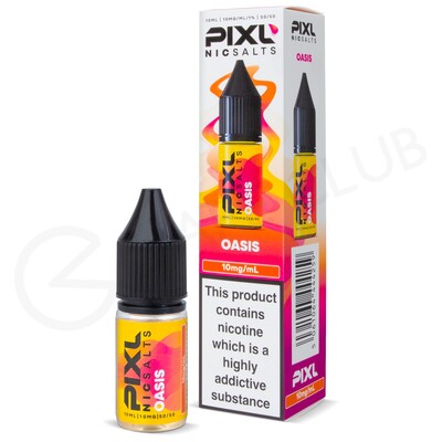 Oasis nic salt e-liquid by Pixl features a fusion of tropical fruit flavours, with juicy-tasting mango and pineapple layered with tangy passion fruit and icy menthol notes.