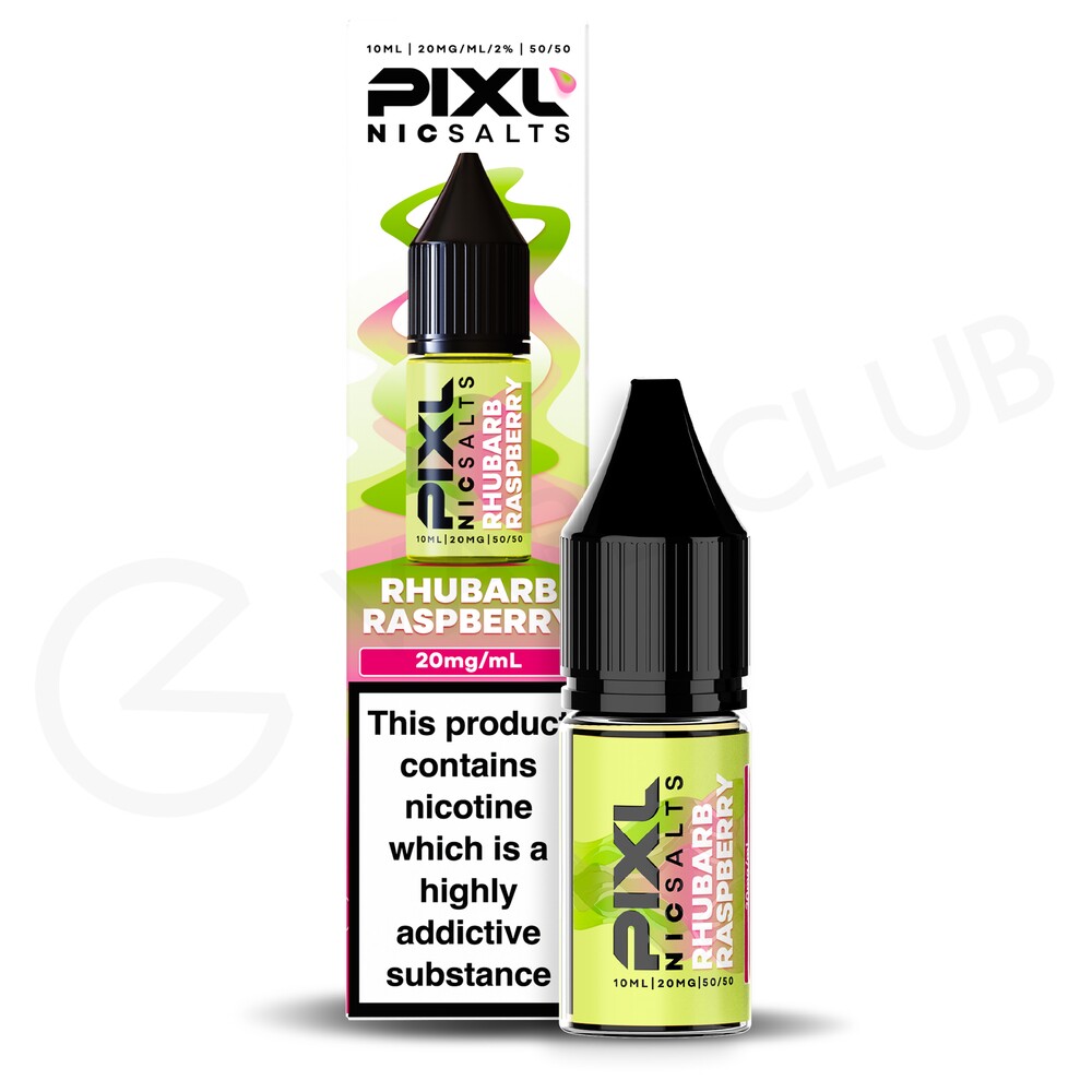 Rhubarb Raspberry nic salt e-liquid by Pixl delivers a punchy pairing of fruit flavours, with sour rhubarb met by tart raspberry for a unique blend.