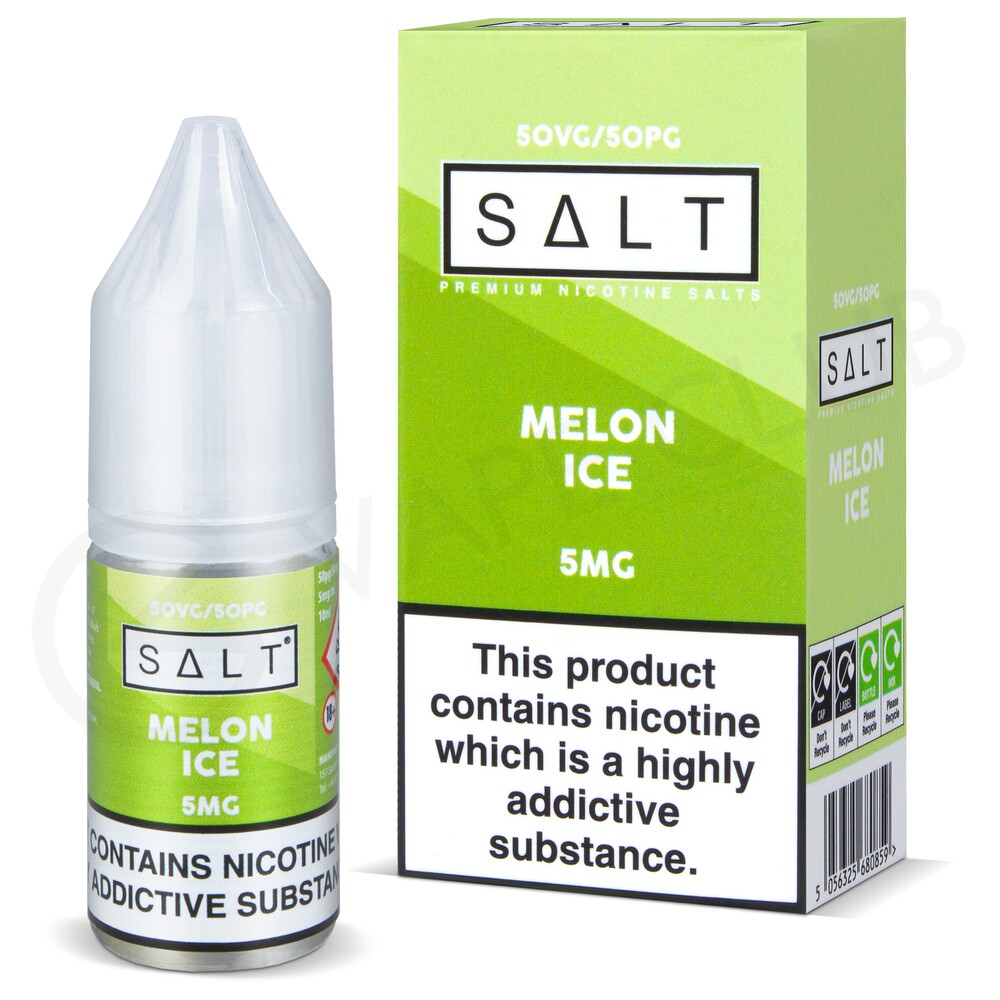 Melon Ice nicotine salt e-liquid by Salt delivers frozen tropical fruit flavour. Notes of exotic melon are paired with cool, frosty ice throughout.