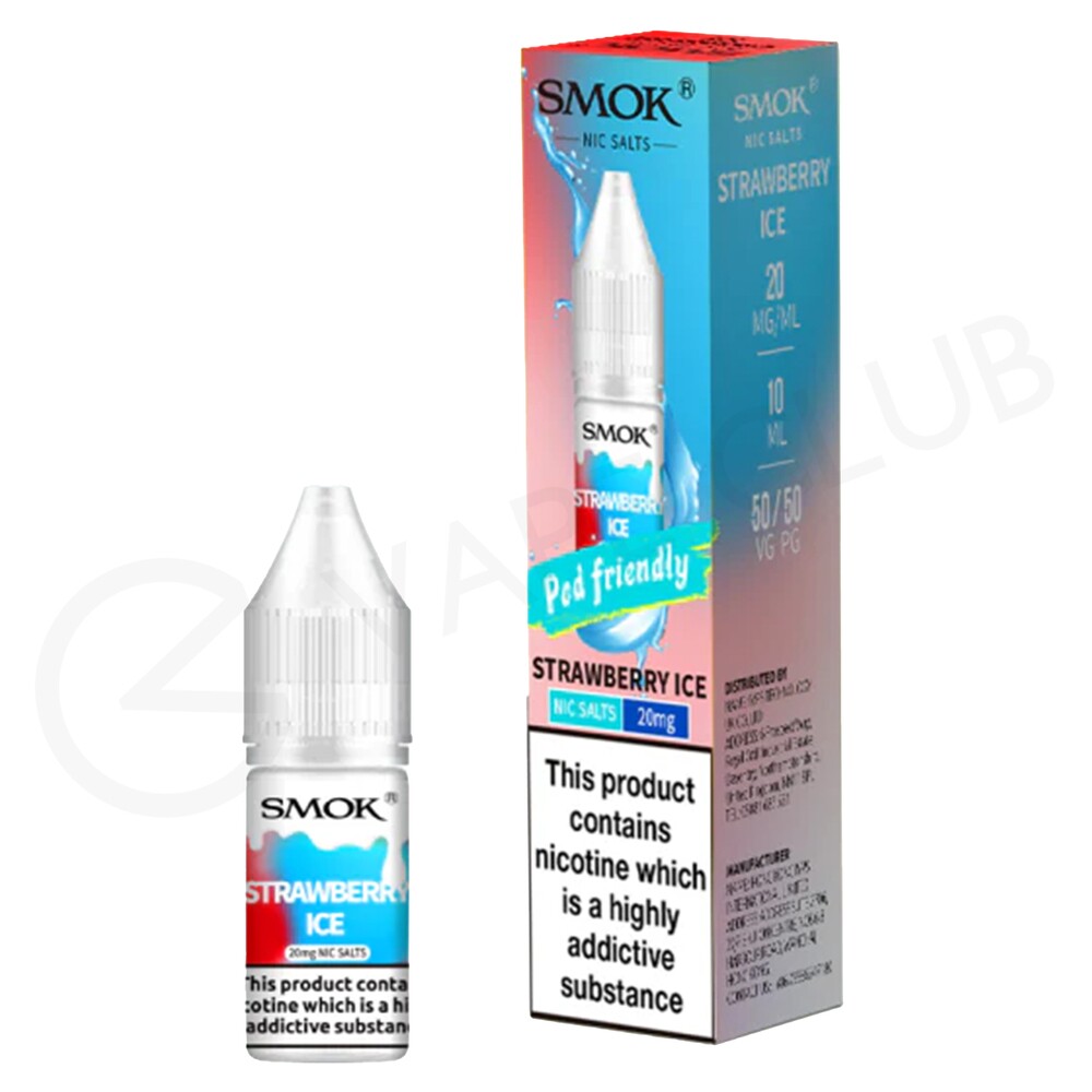 Strawberry Ice nic salt e-liquid by Smok Pod Friendly takes the sweet and summery flavour of strawberry and fuses it with frosty ice notes for a chilled fruit vape.