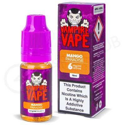 Mango Paradise e-liquid by Vampire Vape features a tropical blend of tangy pineapple, sweet mango, and juicy-tasting blood orange for a bold flavour in every puff.