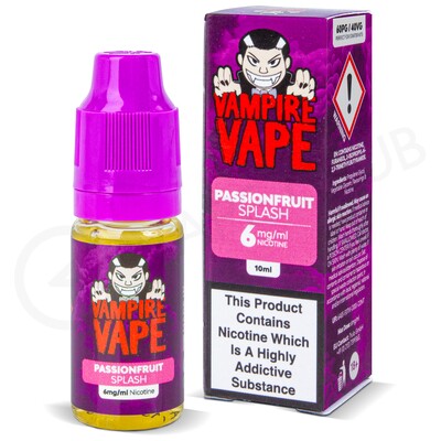 Passionfruit Splash e-liquid by Vampire Vape delivers a unique tropical flavour. Tangy passionfruit notes fused with the taste of smooth banana and distinct curuba that develops throughout.