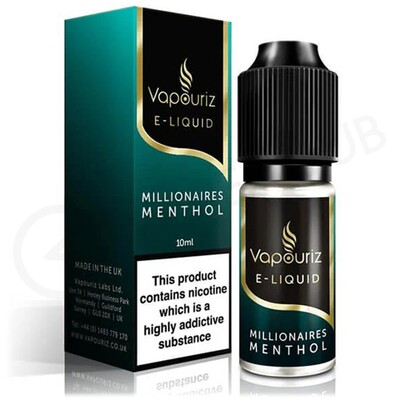 Millionaires Menthol is mixed with freebase nicotine and is available in 0mg, 3mg, 6mg, 12mg, and 18mg nicotine strengths. Freebase nicotine provides a more intense throat hit on inhale and tackles cravings for longer.