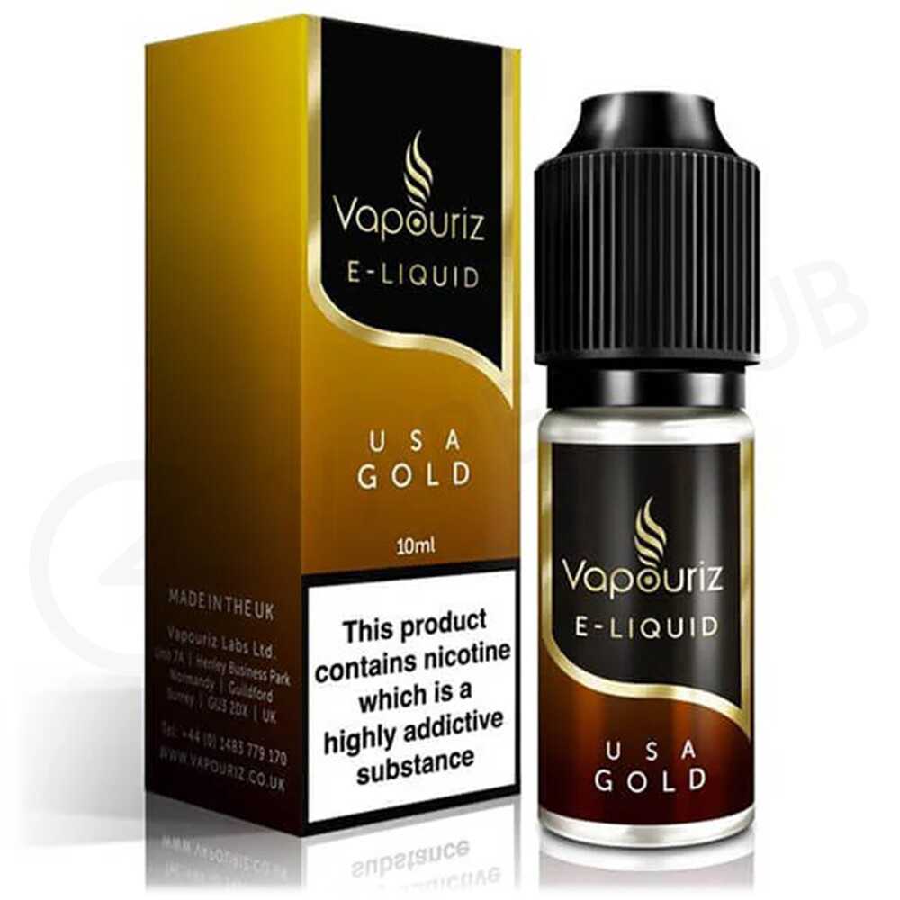 USA Gold Tobacco e-liquid by Vapouriz delivers bold flavour with a slightly sweet twist. A distinct, dark tobacco taste is present throughout, complemented by notes of toasted nuts for a layered finish.