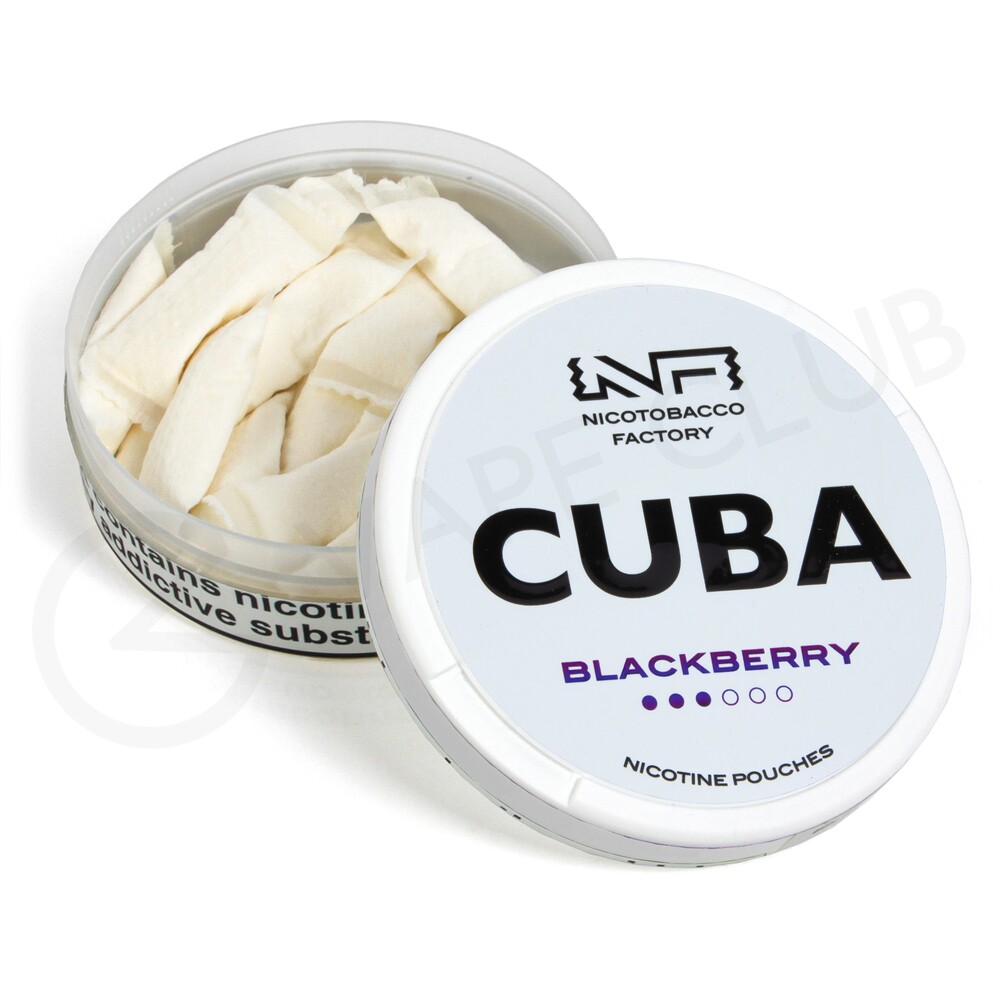 Nicotine pouches do not produce any vapour, and so are an ideal way to satisfy nicotine cravings in locations where you are unable to vape. Cuba Blackberry nicotine pouches are available in 16mg (11.5mg) nicotine strength per pouch, making them ideal for experienced pouch users.