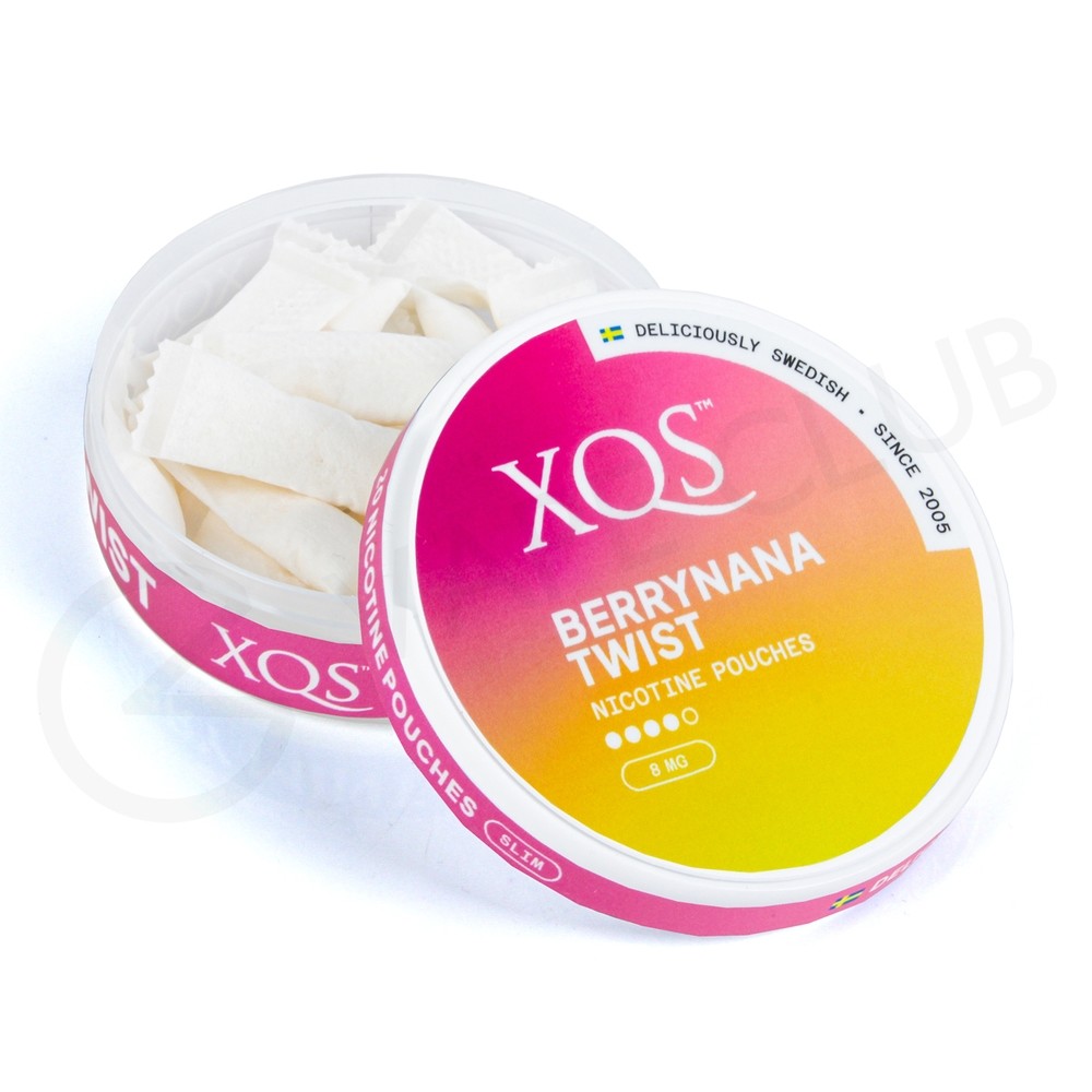 Berrynana Twist XQS nicotine pouches fuse rich banana notes with a sweet mixed berry flavour.