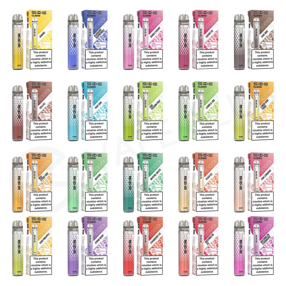 (29 Aug 2025)The SKE CL2000 pod kit can be used with the range of SKE CL2000 refill packs, each prefilled with 20mg nic salt e-liquid in some of the best-selling SKE flavours.
