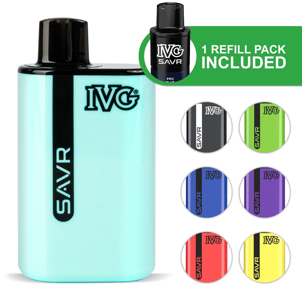 The IVG SAVR pod kit is a reusable big puff vape that's perfect if you’re after a longer-lasting device with a higher puff count. The built-in 650mAh battery should last most vapers all day before it needs to be recharged. Equipped with a 2ml prefilled pod that contains a mesh coil and a 4ml refill container, the SAVR delivers up to 3000 puffs right out of the box. When the kit runs out of e-liquid, simply replace the refill containers.