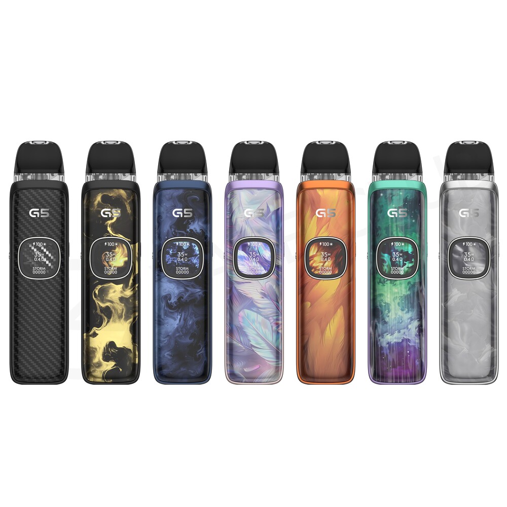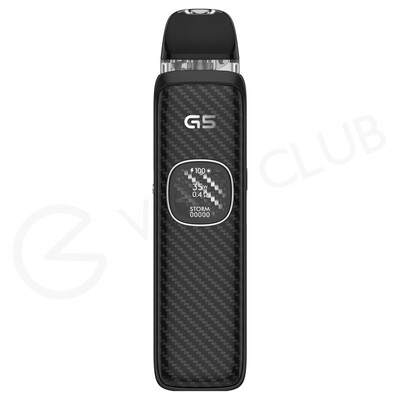 Fill the pod and insert it into the G5 device. Smart Mode will detect the pod you’ve chosen and set the best power level, so you can just puff on the mouthpiece to vape. The kit features two power settings, Waves Mode and Storm Mode. Waves Mode provides consistent power and conserves battery, whilst Storm Mode delivers a boost to flavour. You can also change how loose or tight the inhale feels by adjusting the airflow slider on the side of the kit.