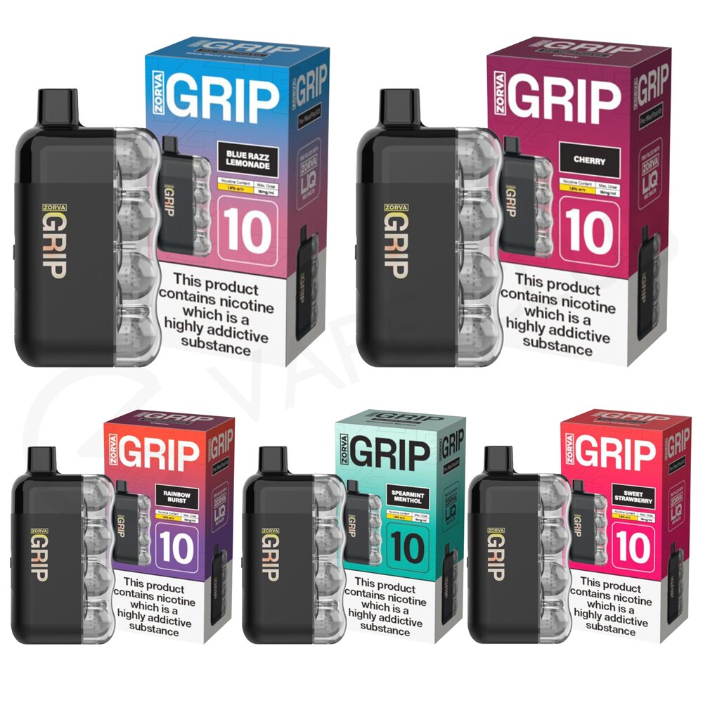 The Zorva Grip is a simple, stylish big puff vape. The built-in 1100mAh battery should last all day, and can be recharged in 40 minutes. The kit includes a 2ml prefilled pod and four 2ml refill containers, for a total of 10ml of e-liquid. Once the pod and containers are empty, you can replace them with new ones and keep vaping.
