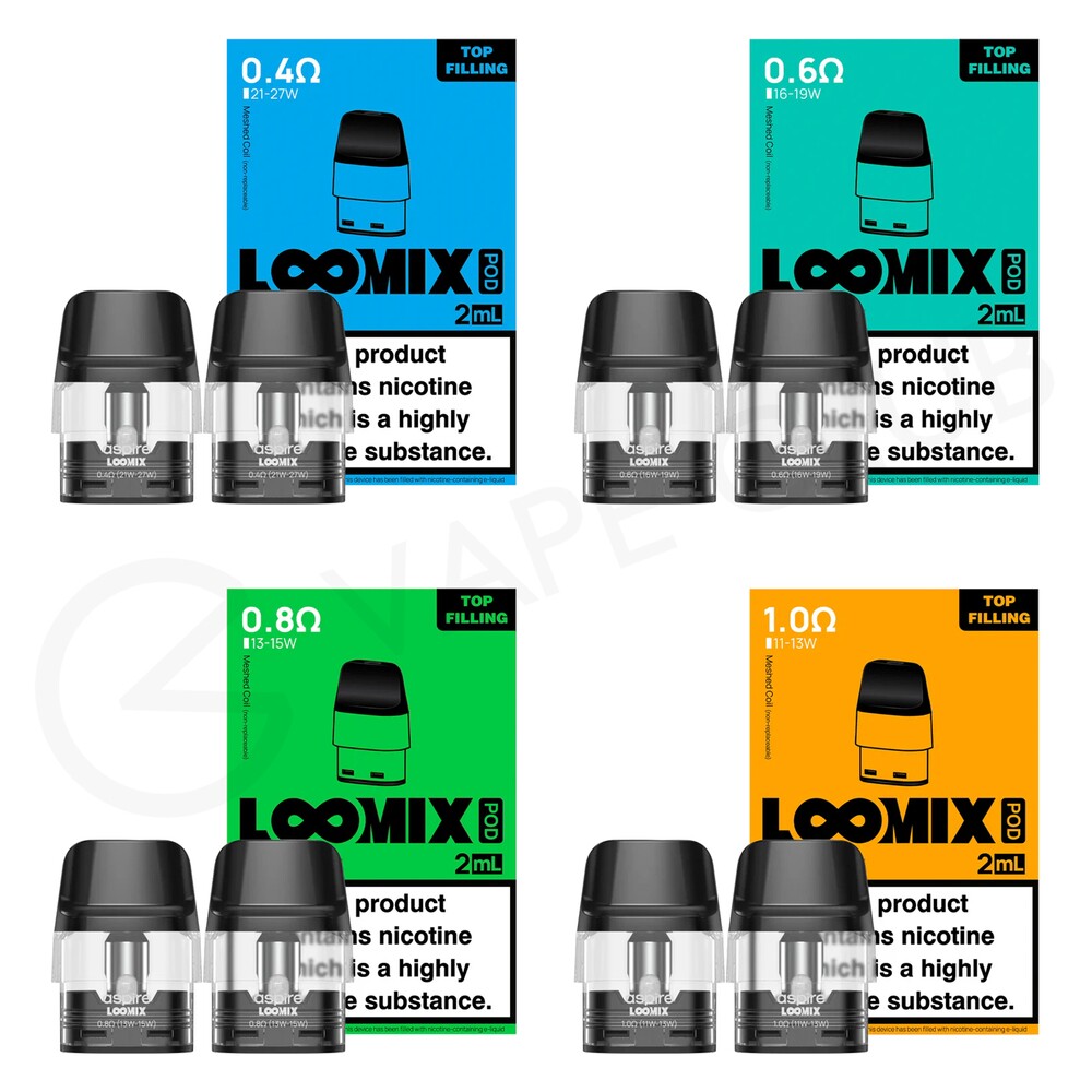 The Aspire Loomix refillable pods are designed for the Aspire Loomix vape kit. Able to hold 2ml of e-liquid, they are available in four different resistances, three of which are ideal for MTL (Mouth To Lung) vaping and one which can deliver a RDTL (Restricted Direct To Lung) inhale.