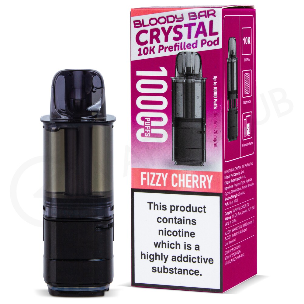 Bloody Bar Crystal refill packs are designed to be used with the Bloody Bar Crystal 10K vape kit. Each pack contains a prefilled 2ml pod that houses a 0.8 Ohm mesh coil, along with a 8ml refill container, that are both replaceable. When assembled and paired with your device, they'll deliver up to 10,000 puffs. You can expect a smaller amount of vapour which is slightly more airy, mimicking a cigarette-like MTL (Mouth To Lung) inhale.