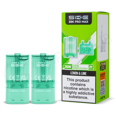 Lemon & Lime SKE 30K Pro Max refill packs are replacements for the SKE 30K Pro Max big puff vape kit. Delivering up to 30,000 puffs in total, they’re designed for MTL (Mouth To Lung) vaping, and will produce an inhale that feels like a cigarette, making them ideal for beginners or anyone looking for lower levels of vapour. As they're replaceable, just grab a new refill pack once the e-liquid inside runs out.