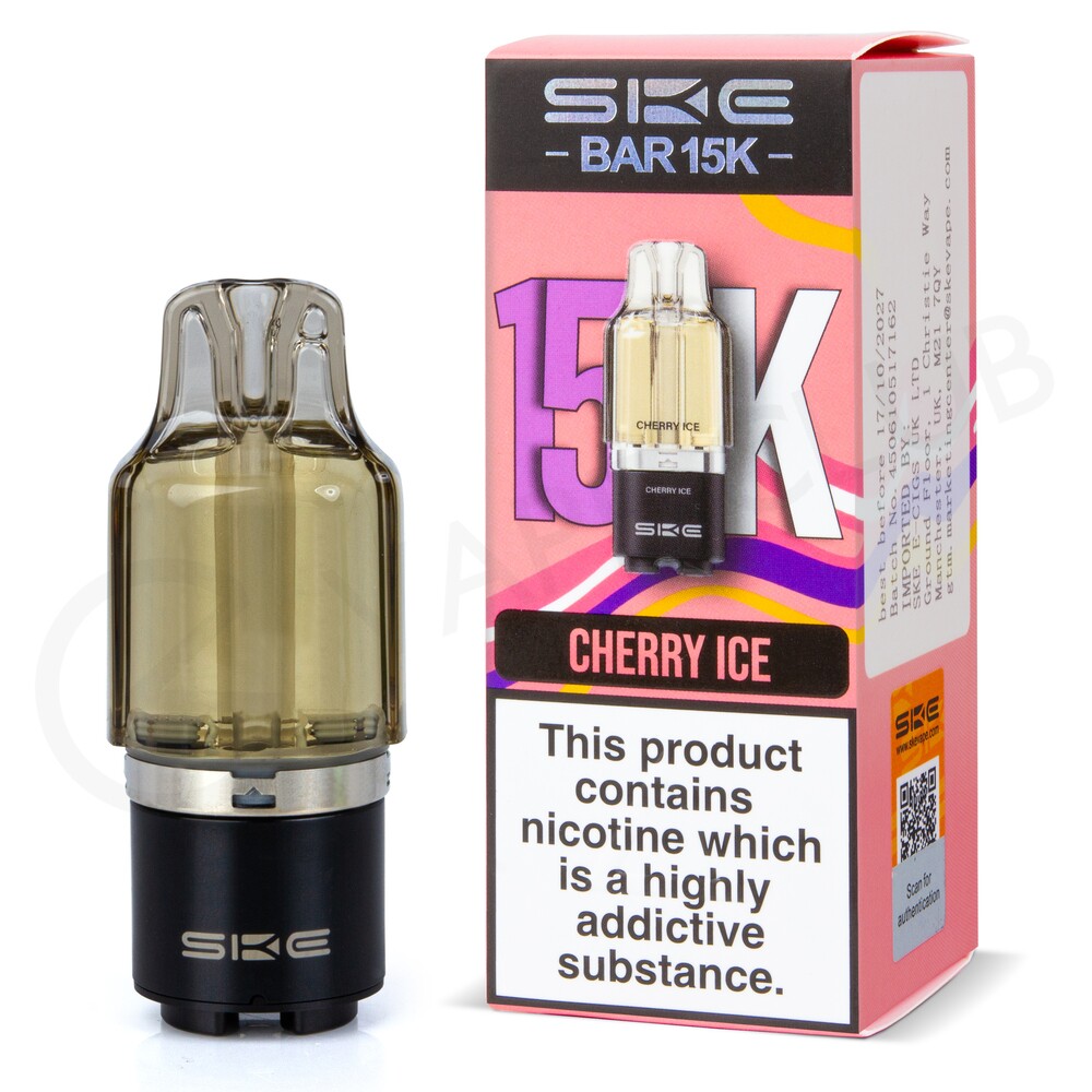 The Cherry Ice SKE Bar 15K refill pack features the instantly recognisable flavour of sweet red cherry, fused with frosty ice notes to create a classic frozen fruit blend.