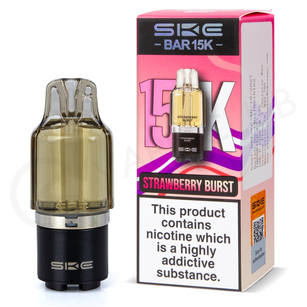 The Strawberry Burst SKE Bar 15K refill pack provides a bold berry flavour from start to finish. You'll taste punchy notes of sweet strawberry for a fruity and rich all-day vape.