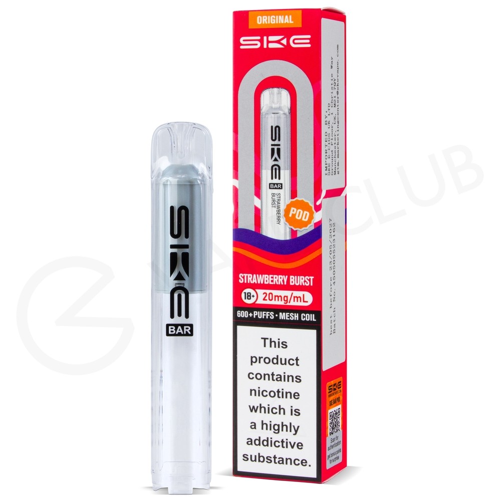 The Strawberry Burst SKE Bar prefilled pod provides a simple, sweet and juicy-tasting strawberry flavour throughout.