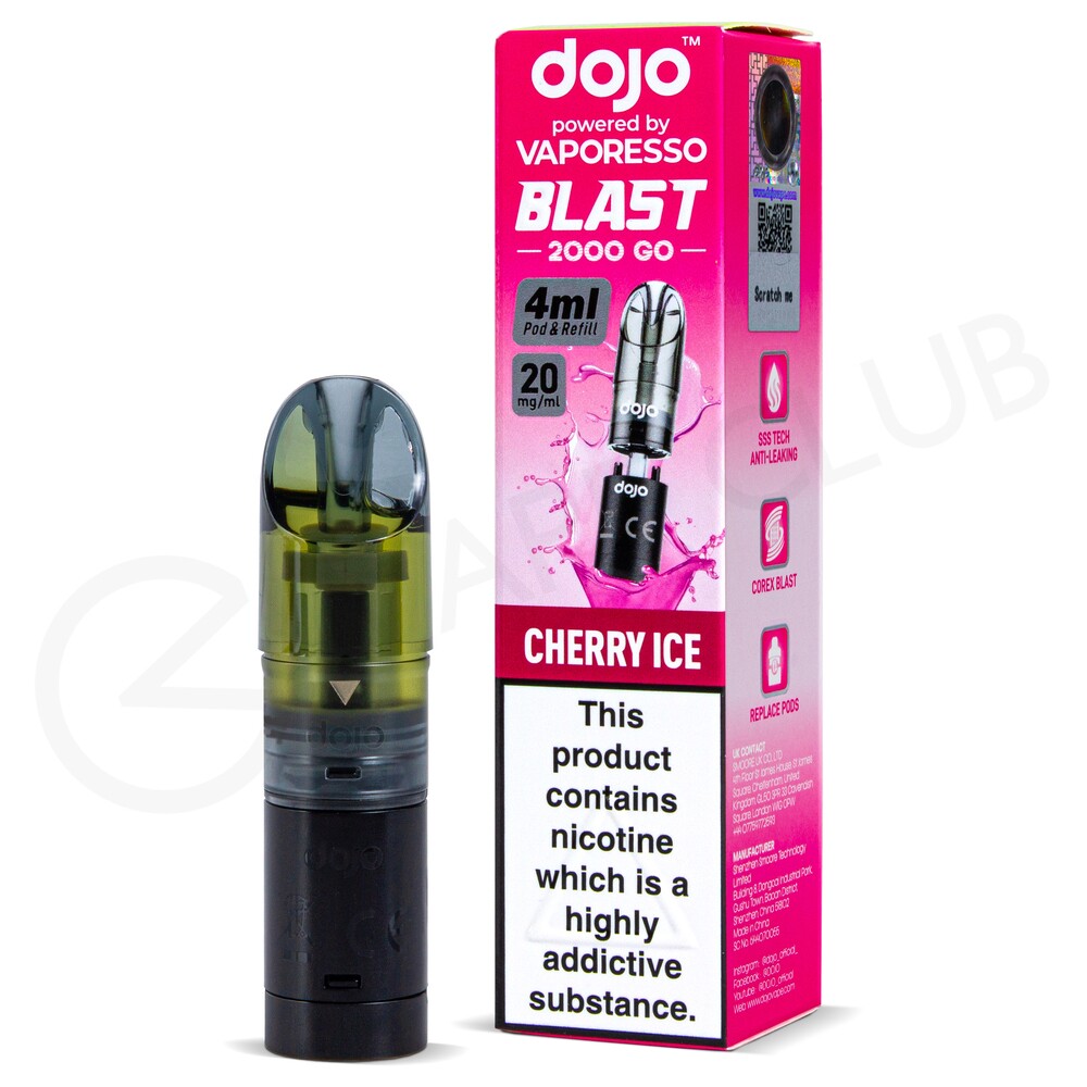 Refill For Dojo Blast 2000, Prefilled 1ml Pod & 3ml Container, 20mg Nic Salt E-Liquid, Mesh Coil- In Stock