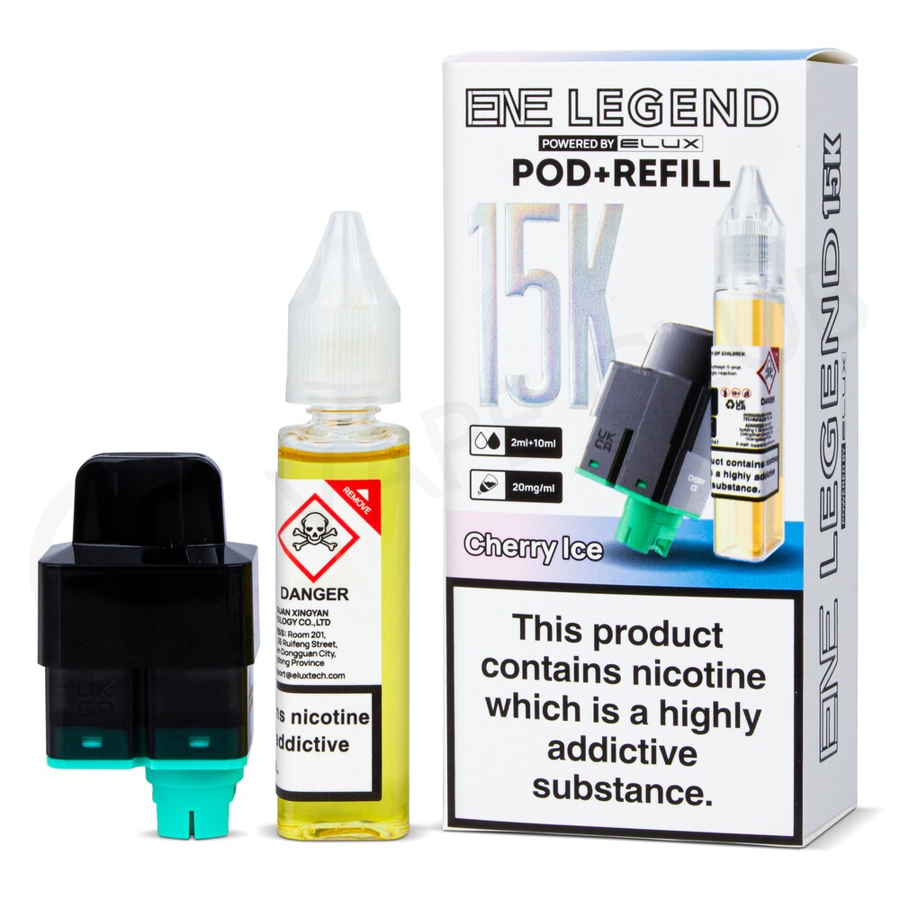 Cherry Ice Elux ENE Legend refill pods are designed to be used with the Elux ENE Legend big puff vape. Each refill pack contains a 2ml prefilled pod and a 10ml prefilled container, for a total of 12ml of 20mg e-liquid. The pod features a built-in mesh coil to boost flavour, and is ideal for MTL (Mouth To Lung) vaping. It will create small amounts of vapour for an inhale similar to a cigarette.
