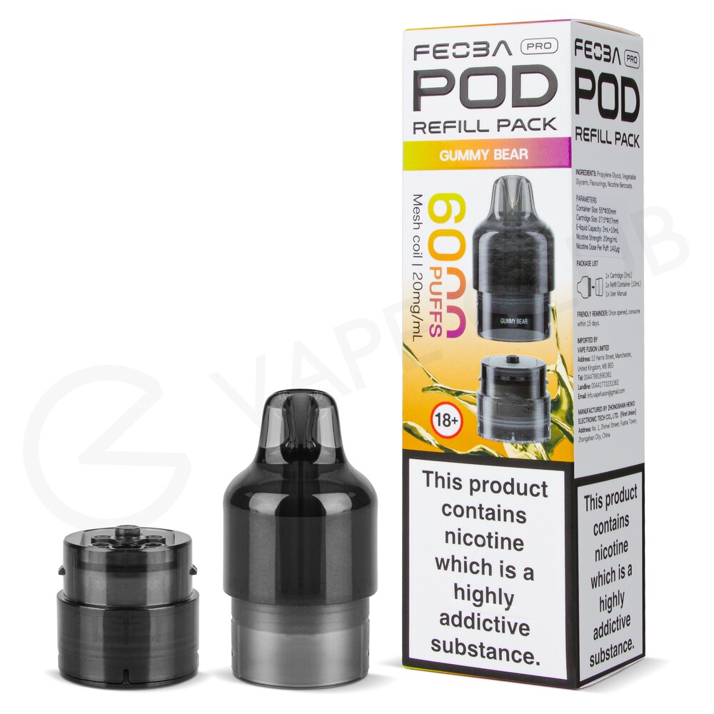 Feoba Pro 6000 refill packs feature a total 12ml of 20mg nic salt e-liquid. The blend of nic salts will provide a smoother throat hit along with faster craving satisfaction. As the pod features a mesh coil, it'll improve vapour production and boost flavour. Once the pod and refill container run out of vape juice, simply replace them with a new refill pack. You'll find them in a range of ice, mint, fruit, soda and candy-inspired blends.