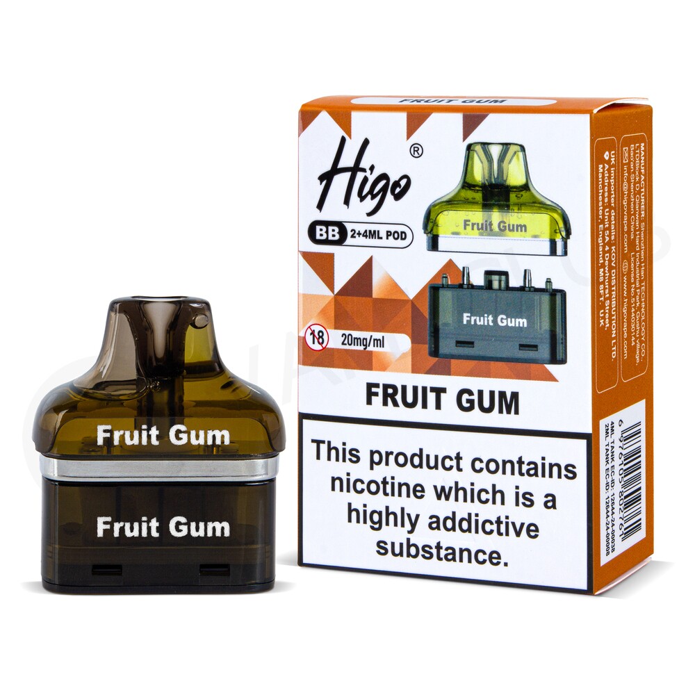 The Fruit Gum Higo BB 4000 refill pack is designed for use with the Higo BB 4000 vape kit. Featuring a 2ml prefilled pod and 4ml refill container, each refill pack will deliver up to 4000 puffs before needing to be replaced. Each comes prefilled with 20mg nic salt e-liquid, so you can expect fast craving satisfaction and an MTL (Mouth To Lung) inhale that mimics the feel of a cigarette when paired with your device.