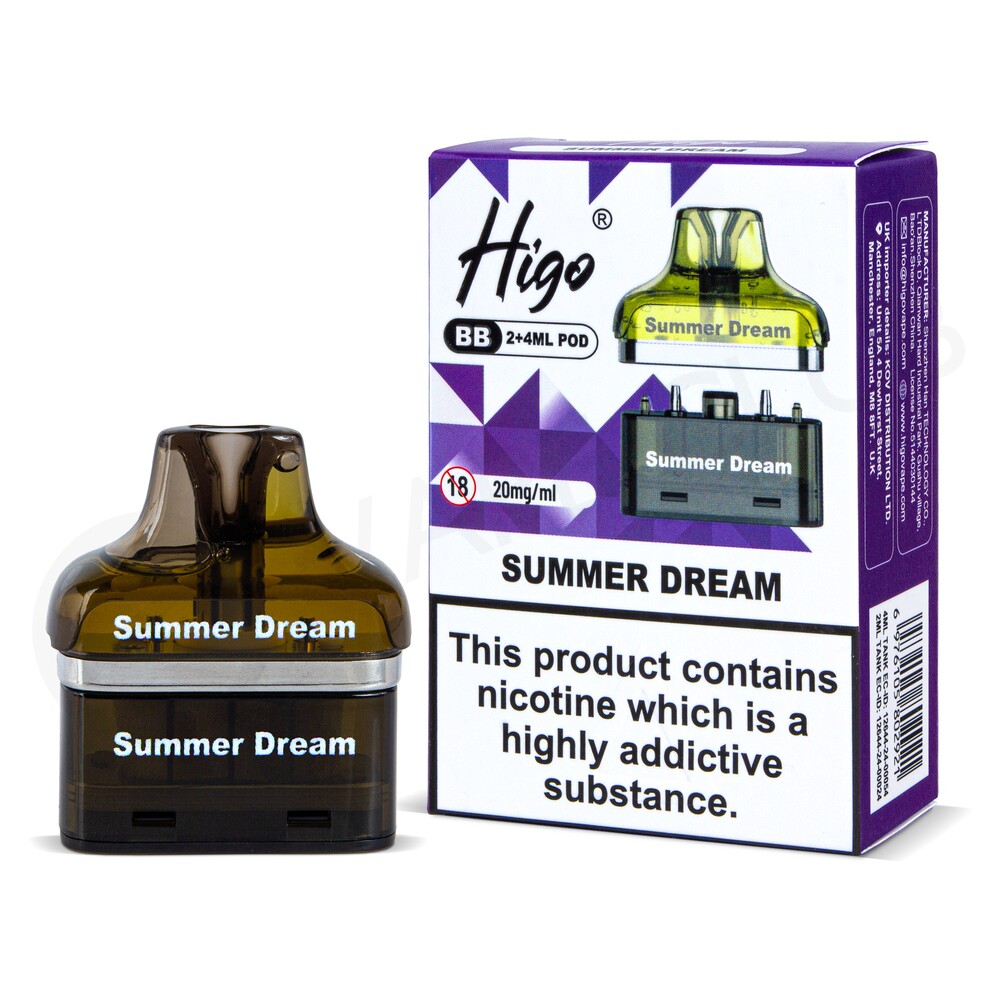 The Summer Dream Higo BB 4000 refill pack is designed for use with the Higo BB 4000 vape kit. Featuring a 2ml prefilled pod and 4ml refill container, each refill pack will deliver up to 4000 puffs before needing to be replaced. Each comes prefilled with 20mg nic salt e-liquid, so you can expect fast craving satisfaction and an MTL (Mouth To Lung) inhale that mimics the feel of a cigarette when paired with your device.