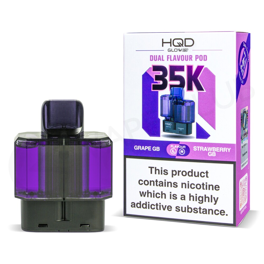 The Grape GB & Strawberry GB HQD Glow Air 70K refill pods are designed to be used with the HQD Glow Air 70K big puff vape. Each refill pack contains one 2ml prefilled pod and two 10ml refill containers in two different flavours. When paired with your device, each pack will deliver up to 70,000 puffs before it needs to be replaced. They are prefilled with 20mg nic salt e-liquid for fast craving satisfaction, delivering a smooth throat hit and an MTL (Mouth To Lung) inhale that feels more like a cigarette.