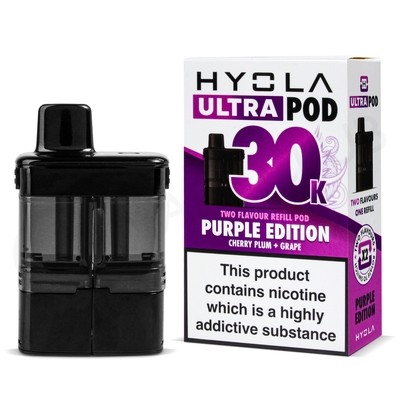 Hyola Purple Edition Ultra 30K refill packs are designed for the Hyola Ultra 30K big puff vape kit. Each refill pack contains two prefilled 1ml pods that house dual mesh coils, along with two 9ml refill containers. When assembled and paired with your device, they’ll provide up to 30000 puffs, along with a discreet amount of vapour for a familiar MTL (Mouth to Lung) inhale.
