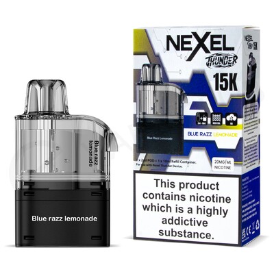 The Blue Razz Lemonade Nexel Thunder 15K refill pack is designed to be used with the Nexel Thunder 15K. Each refill pack consists of a 2ml prefilled pod and 10ml refill container that together deliver up to 15000 puffs before needing to be replaced. Prefilled with 20mg nic salt e-liquid, these pods deliver a smooth throat hit and an authentic MTL (Mouth To Lung) inhale when paired with your device.