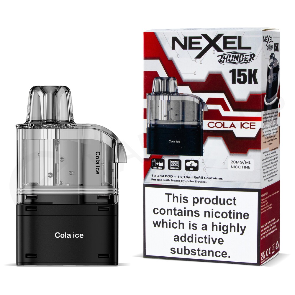 The Cola Ice Nexel Thunder 15K refill pack is designed to be used with the Nexel Thunder 15K. Each refill pack consists of a 2ml prefilled pod and 10ml refill container that together deliver up to 15000 puffs before needing to be replaced. Prefilled with 20mg nic salt e-liquid, these pods deliver a smooth throat hit and an authentic MTL (Mouth To Lung) inhale when paired with your device.