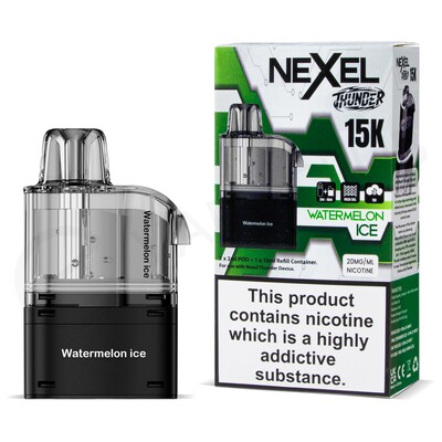 The Watermelon Ice Nexel Thunder 15K refill pack features juicy-tasting watermelon notes on inhale that are cooled down by a chilly blast of ice on exhale for a summery vape.