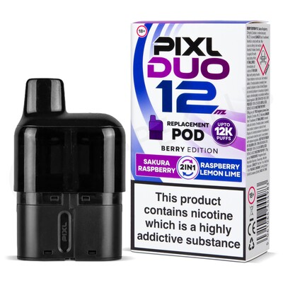 The Berry Edition Pixl Duo pod refill is designed to be used with the Pixl Duo 12 6K pod kit. This pod refill is made up of four components – two 1ml prefilled pods that house mesh coils, and two 5ml refill containers that automatically refill the pods, providing a total of 12ml of 20mg nic salt e-liquid. Paired with your device, they'll deliver up to 6000 puffs and produce a discreet MTL (Mouth To Lung) inhale.