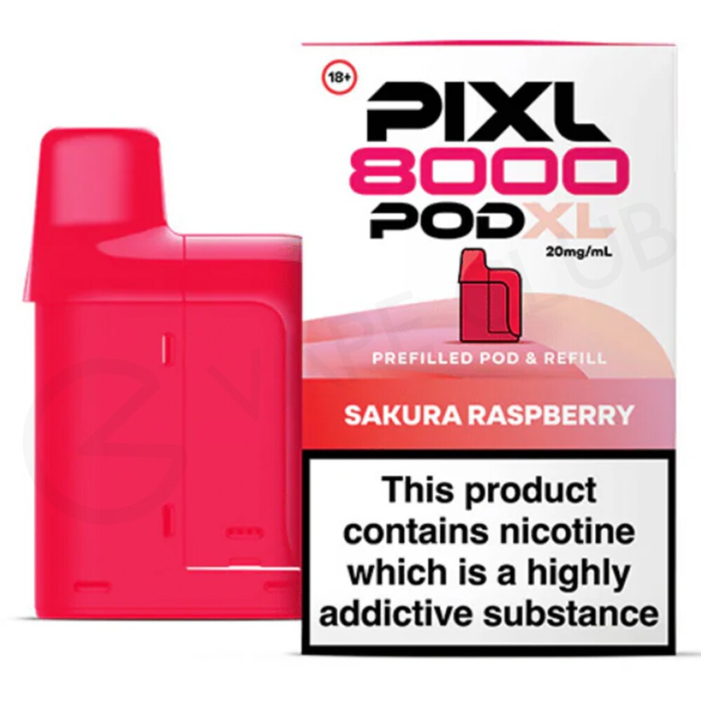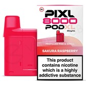 Sakura Raspberry Pixl 8000 refill pods are made to be used with the Pixl 8000 big puff vape. These refill packs contain a 2ml prefilled pod and a 10ml refill container, for a total of 12ml of 20mg e-liquid. The pod houses a built-in mesh coil, which improves flavour by heating e-liquid fast. They have been designed for MTL (Mouth To Lung) vaping and will create a small amount of vapour, delivering an inhale similar to a cigarette.