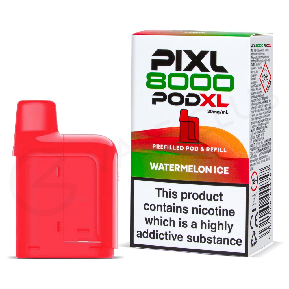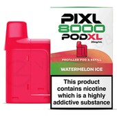 The Watermelon Ice Pixl 8000 refill pack showcases juicy-tasting watermelon notes and cools things off with a chilly exhale for a sweet and balanced vape.
