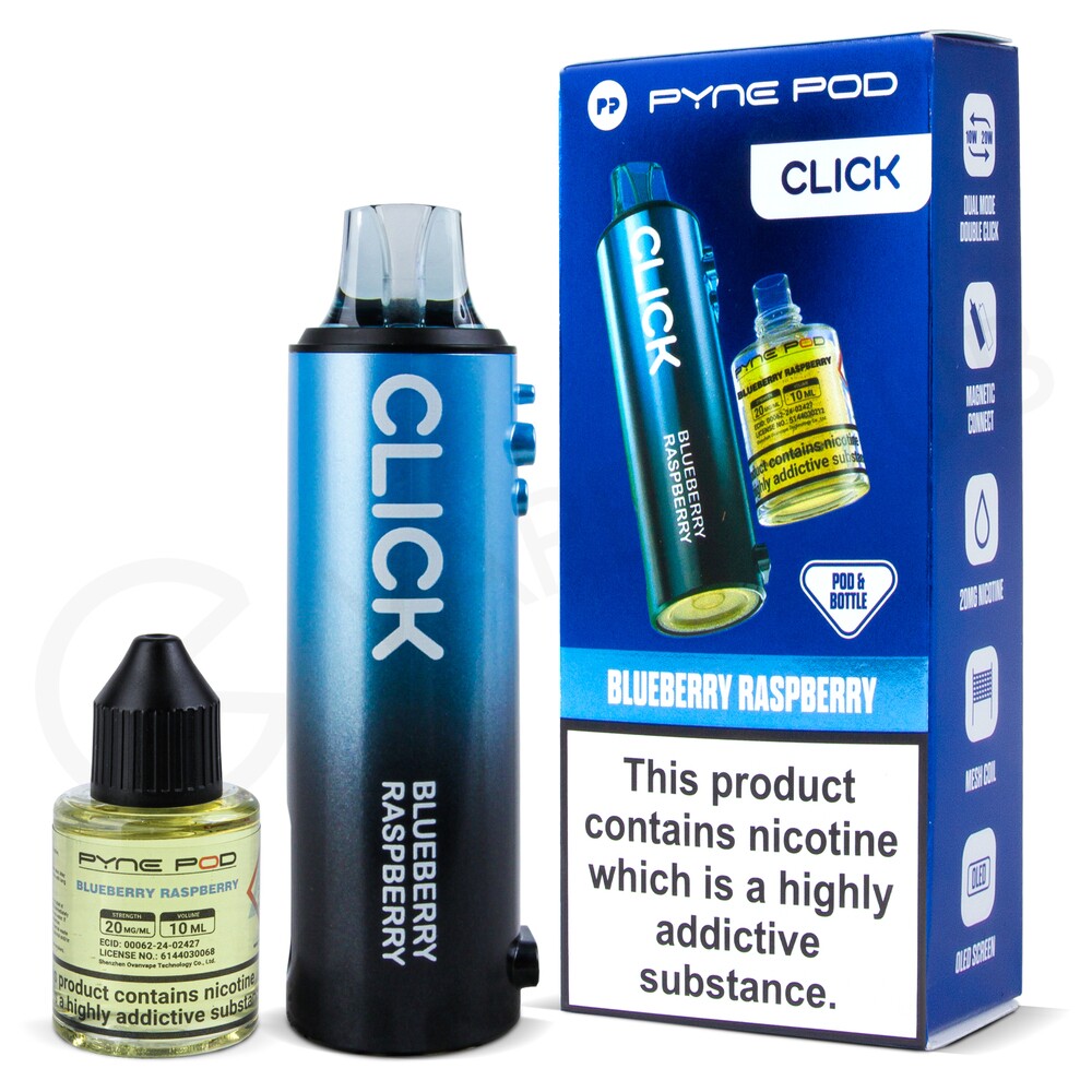 The Blueberry Raspberry Pyne Pod Click refill pack combines a duo of classic berry flavours. The fruity taste of blueberry layers with sharp notes of raspberry for a rich yet balanced berry vape.
