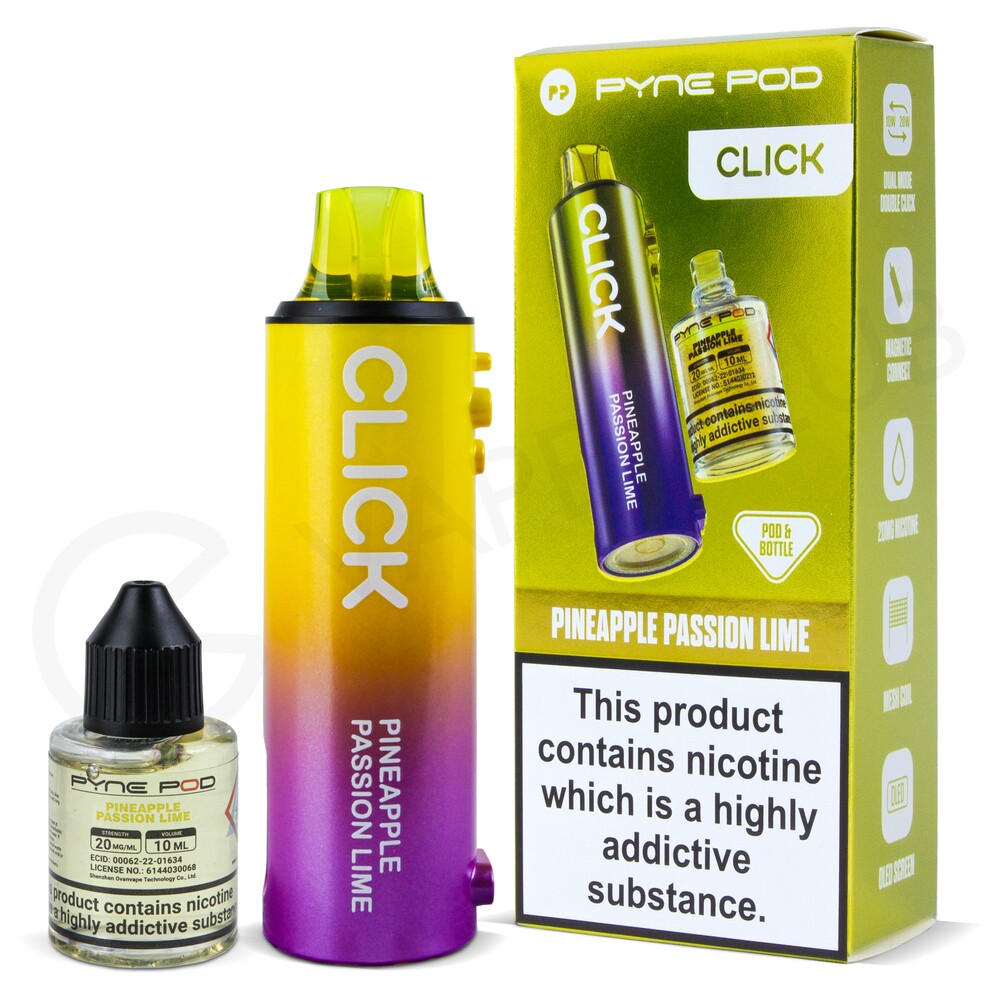 The Pineapple Passion Lime Pyne Pod Click refill pack blends a trio of classic fruit flavours. You'll taste sweet notes of pineapple fused with tangy passionfruit and zesty lime.