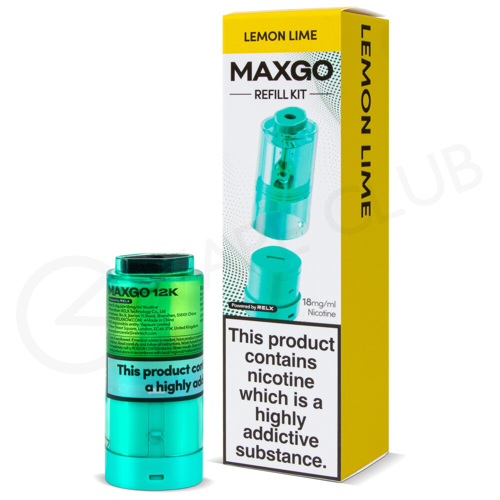 The Lemon Lime Relx Maxgo 12K refill pack balances a duo of classic citrus flavours. A sharp lemon inhale is sweetened by a fruity lime exhale for a juicy-tasting all-day vape.