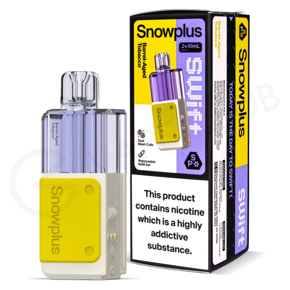 The Barrel-Aged Tobacco Snowplus Swift refill pack features the distinct taste of tobacco aged in wood barrels, for a robust blend with a hint of sweetness.