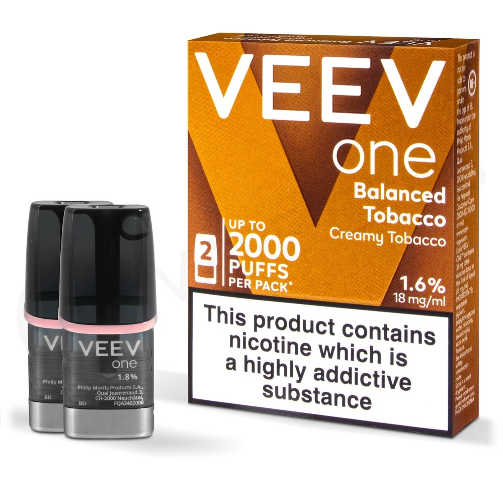 Balanced Tobacco Veev One prefilled pods offer a robust tobacco flavour, balancing deep and earthy notes throughout.
