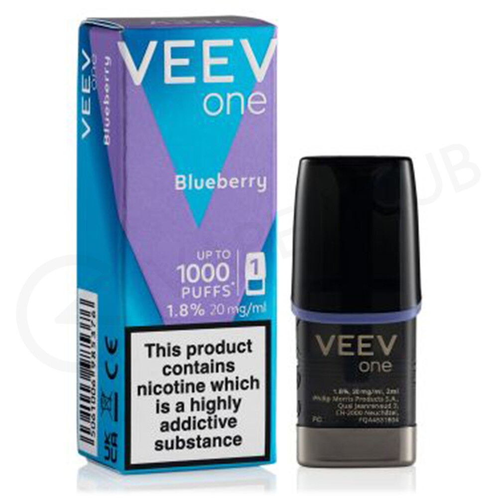 The Veev One Blueberry single prefilled pod features the distinct taste of classic blueberry throughout.