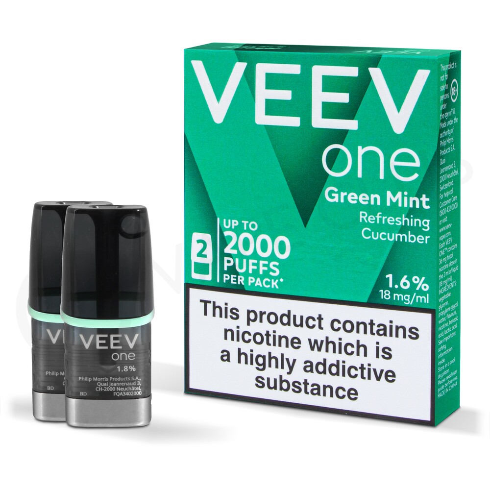 The Green Mint Veev One prefilled pods layer the cool taste of mint with crisp cucumber for a fresh-tasting vape from inhale to exhale.