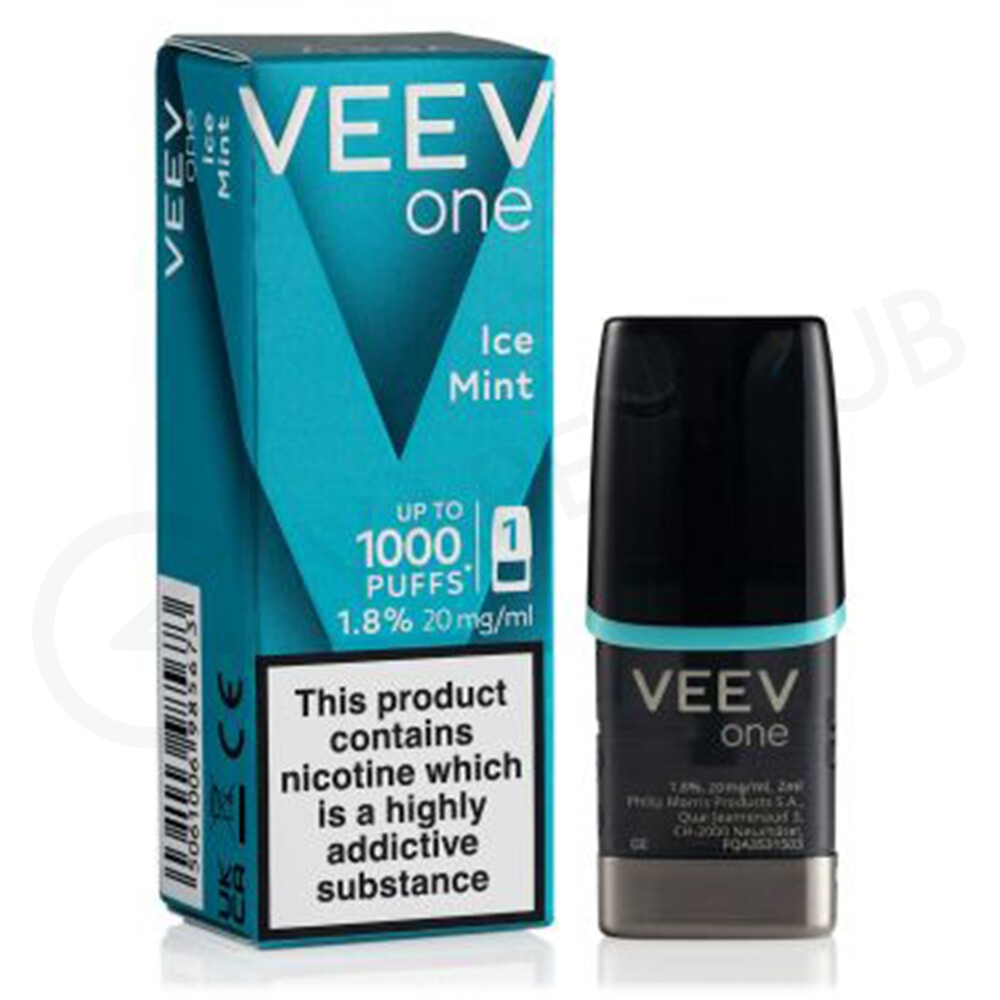 The Veev One Ice Mint single prefilled pod offers the distinct, frosty notes of cool mint from inhale to exhale.