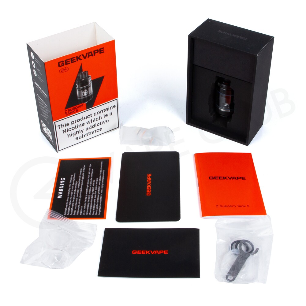 The Geekvape Z 5 tank is a straightforward, simple-to-use choice that is perfect if you’re looking for a sub ohm tank with a stylish design. Including two Geekvape Z XM coils in different resistances, this tank is built for DTL (Direct To Lung) vaping and best paired with a mod that can deliver a power output of at least 50W.